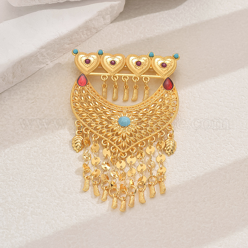 Броши в форме сердца из сплава со стразами для одежды рюкзака, с кисточкой