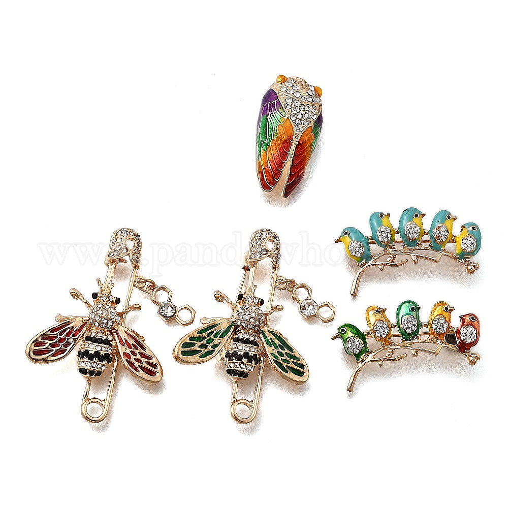 Броши из цинкового сплава с эмалью и стразами, золотые