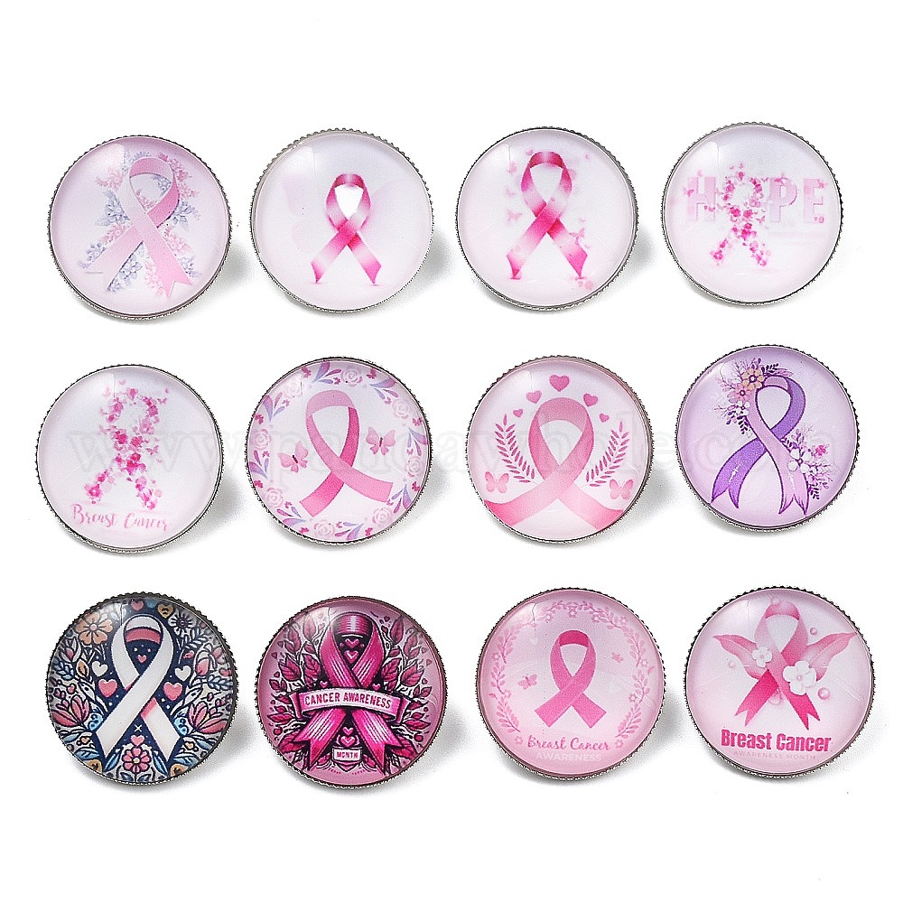 • Разноцветный Лента для осведомленности о раке груди стеклянные броши, сплав края для рюкзака одежды, плоско-круглые, красочный, 27 мм