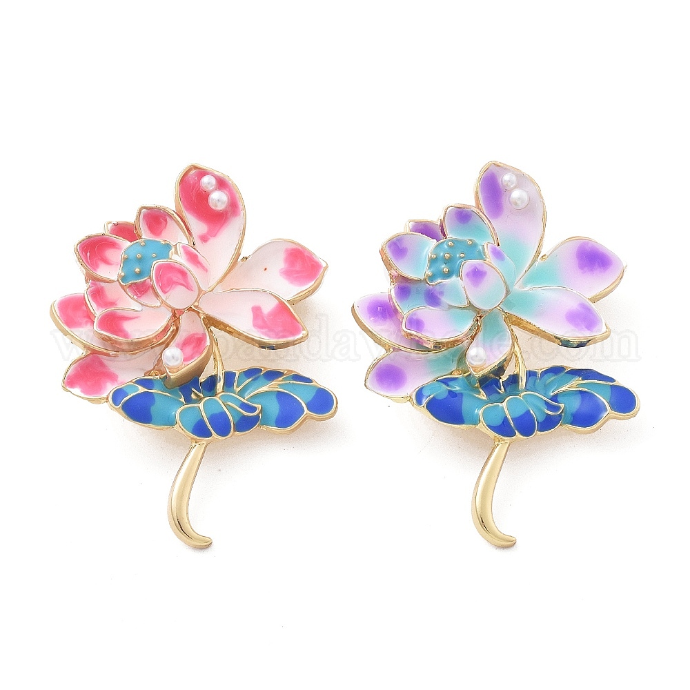 • Средний Фиолетовый Эмалевые булавки в виде лотоса, броши из сплава для одежды рюкзака, с пластиковой жемчужины, средне фиолетовый, 56x41 мм