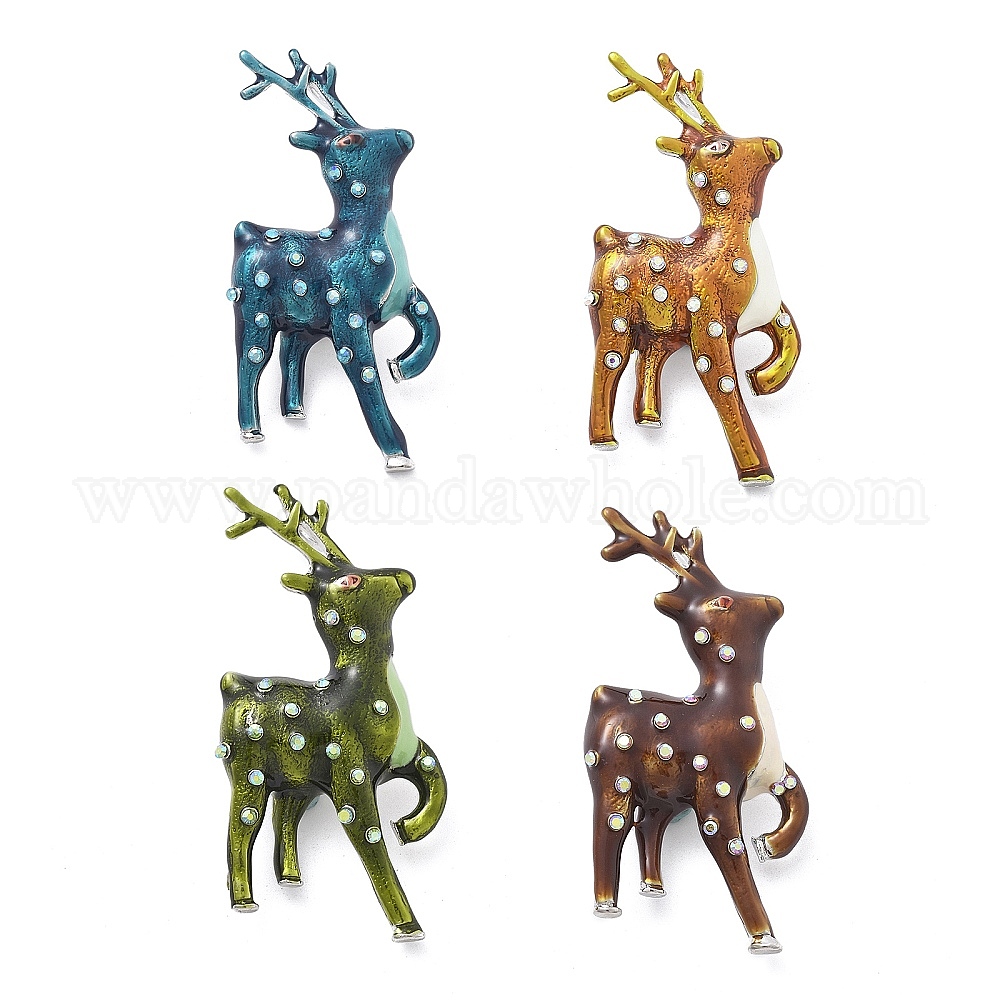 • Цвет Оливы Эмалевые значки с изображением пятнистого оленя, Броши из сплава со стразами для рюкзака, оливковый, 64.5x32 мм
