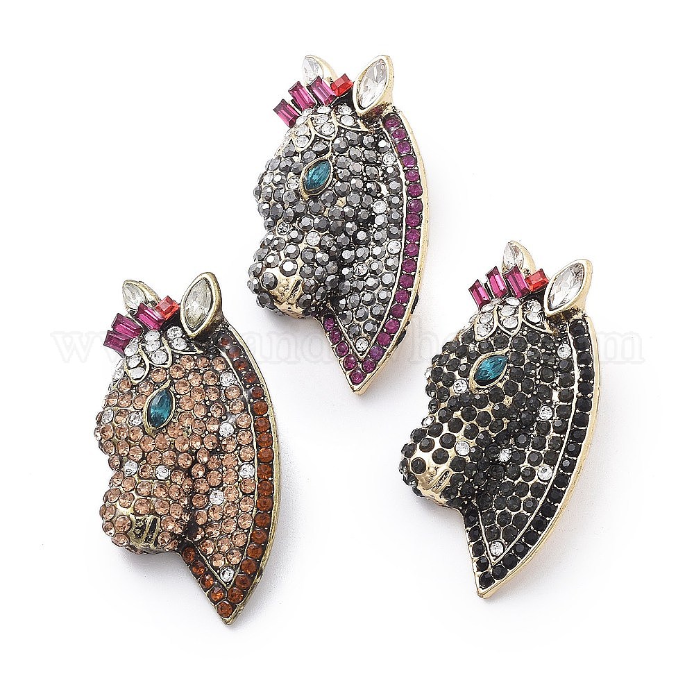 Броши из сплава в виде головы лошади со стразами
