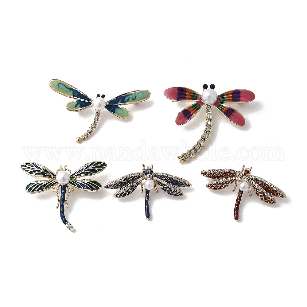 Эмалевые булавки в виде стрекозы, Броши из сплава со стразами для рюкзака, с пластиковой жемчужины (0329WT)