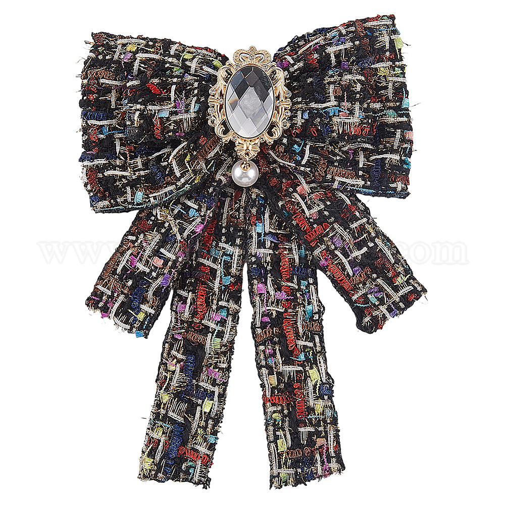 • Черный Полиэстеровые броши-банты для рюкзаков, с железной фурнитурой и искусственным жемчугом, чёрные, 210x140 мм