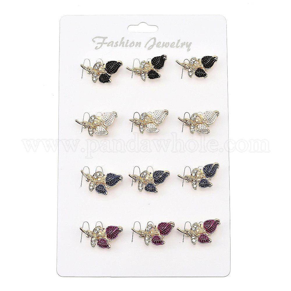 • (52) Непрозрачная лаванда 12шт. 4 цвета эмалированные булавки в форме розы, Броши из сплава со стразами для рюкзака, разноцветные, 29.5x16.5 мм, 3 шт / цвет