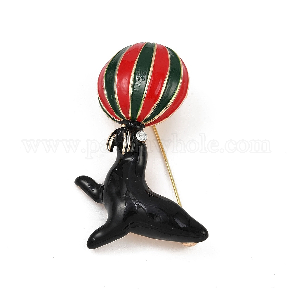 Эмалевые значки в виде морского льва, играющего в мяч, Броши из сплава со стразами для рюкзака