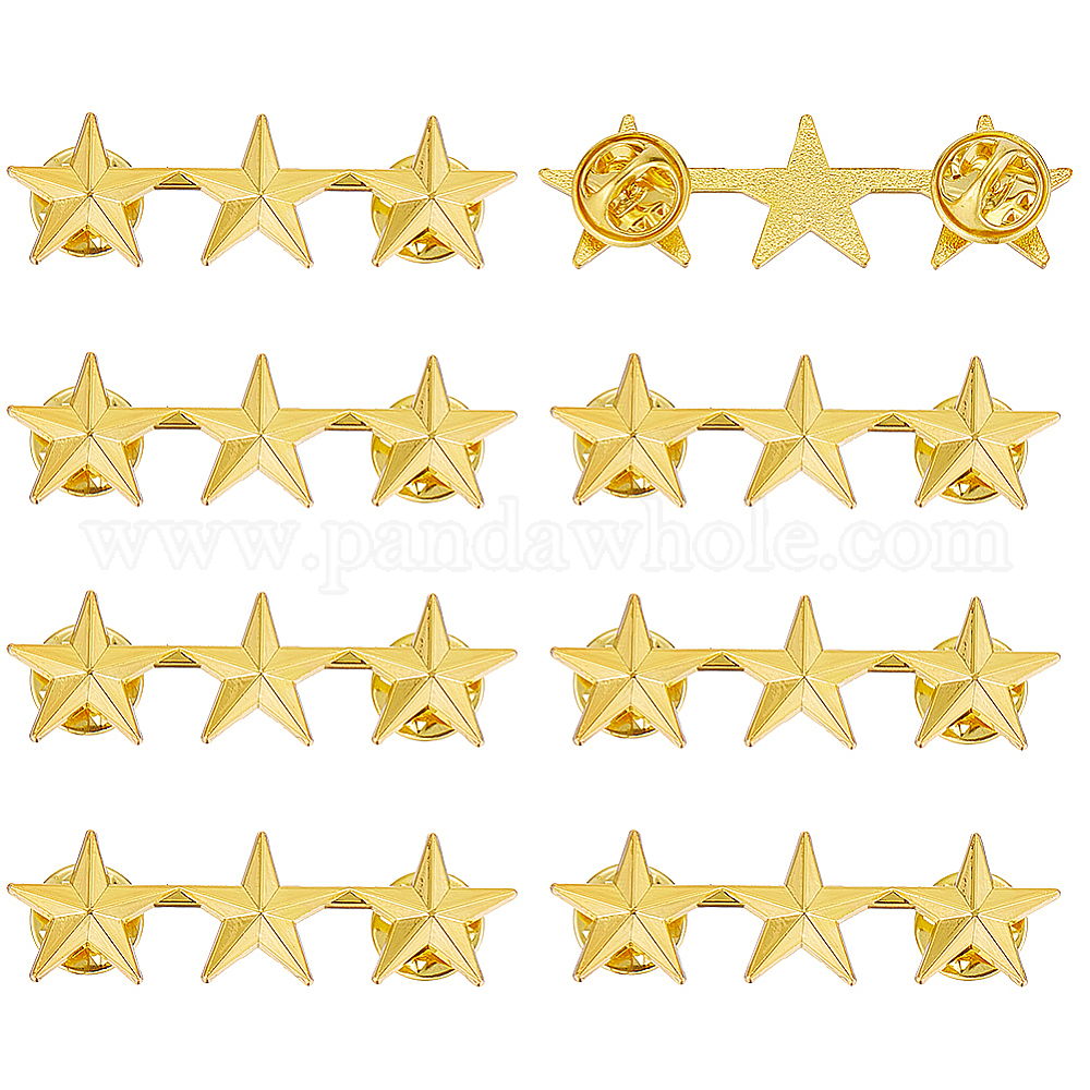 • Золотой 8 шт. броши в форме звезды из цинкового сплава, Лацкан, золотые, 15x50.5 мм