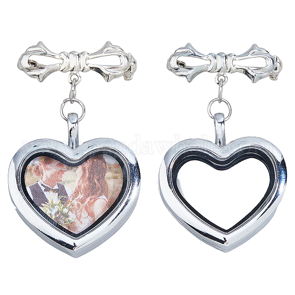 2шт латунная брошь, с магнитными стеклянными подвесками-медальонами из сплава, сердце