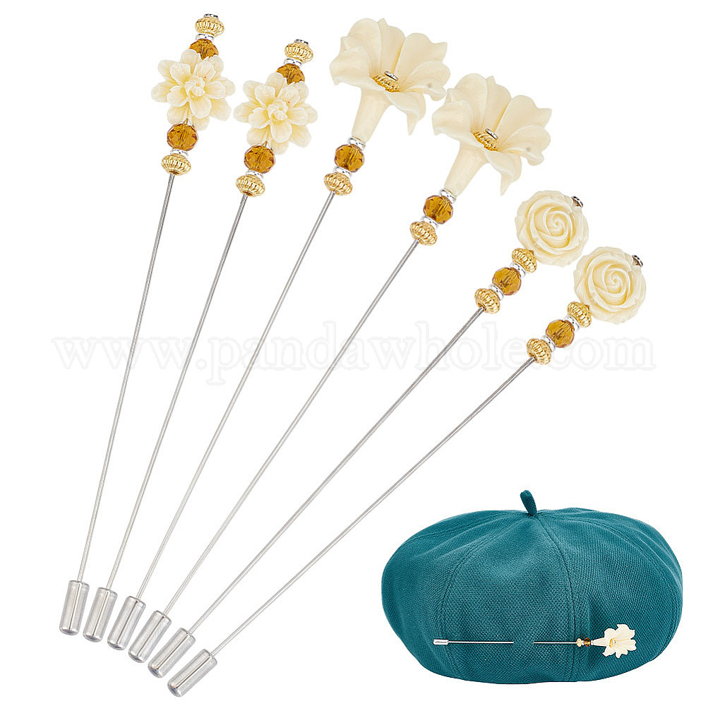 • Платина 6шт 3 латунные штифты в форме цветка, с синтетическими коралловых, платина, 128~152 мм, 2 шт / стиль