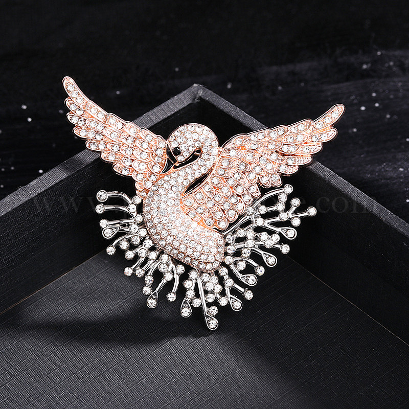 • Platinum & Light Gold Лебедь сплав горный хрусталь значки на лацкан для рюкзака одежды, платина и светлое золото, 49x60 мм