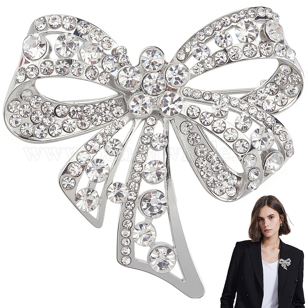 1Значки для лацканов одежды из сплава поликарбоната с бантом и стразами