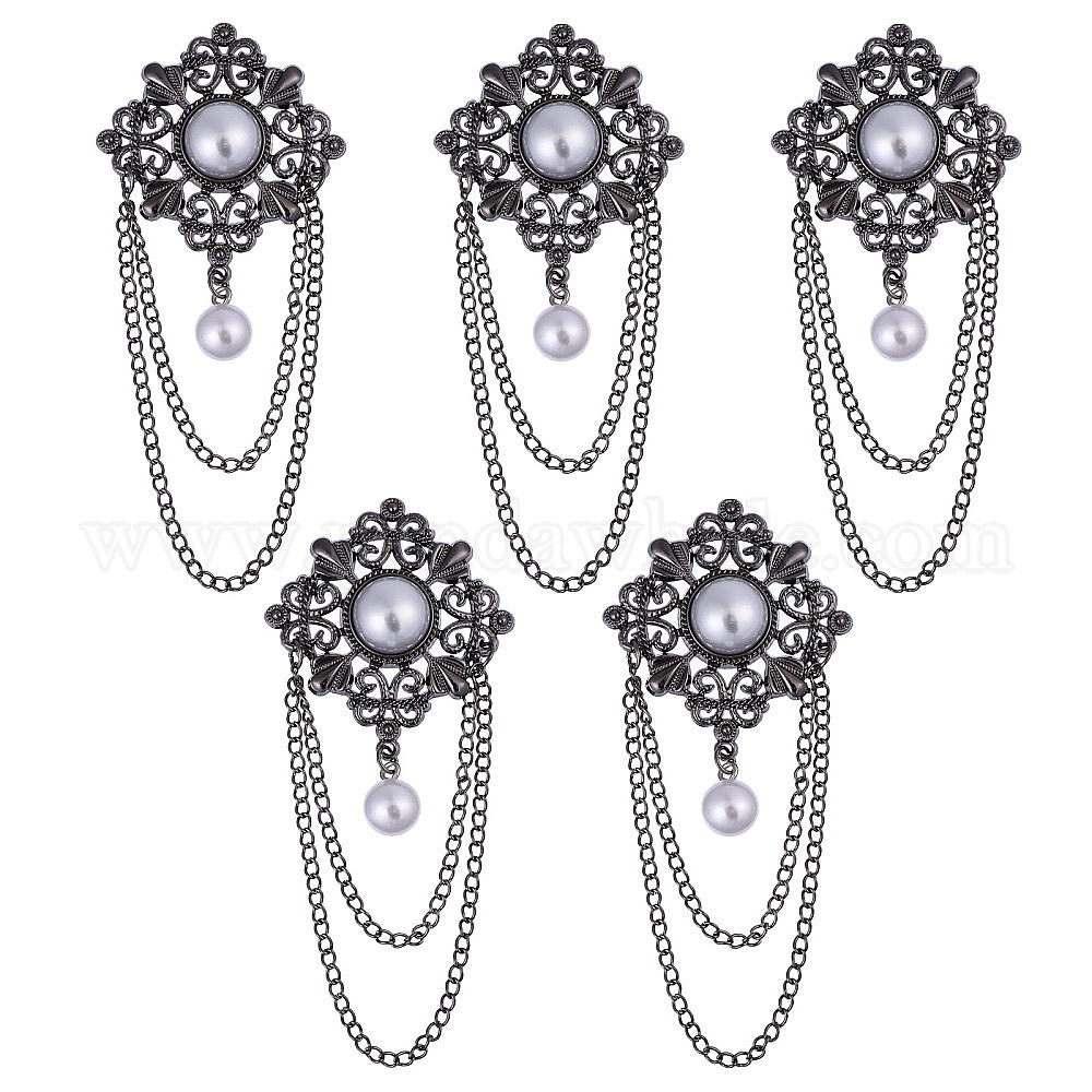 5 броши из сплава, с пластиковыми бусинами, имитирующими жемчуг, и железными булавками, цветок