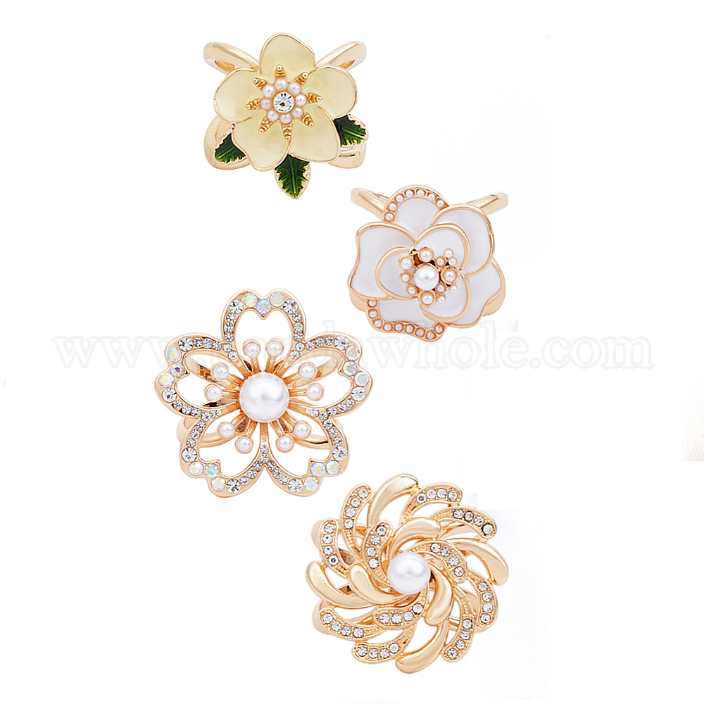 4 шт. 4 стили зажим для шарфа из цинкового сплава с цветком, броши-пуговицы для шали для женщин, с жемчугом из смолы и стразами