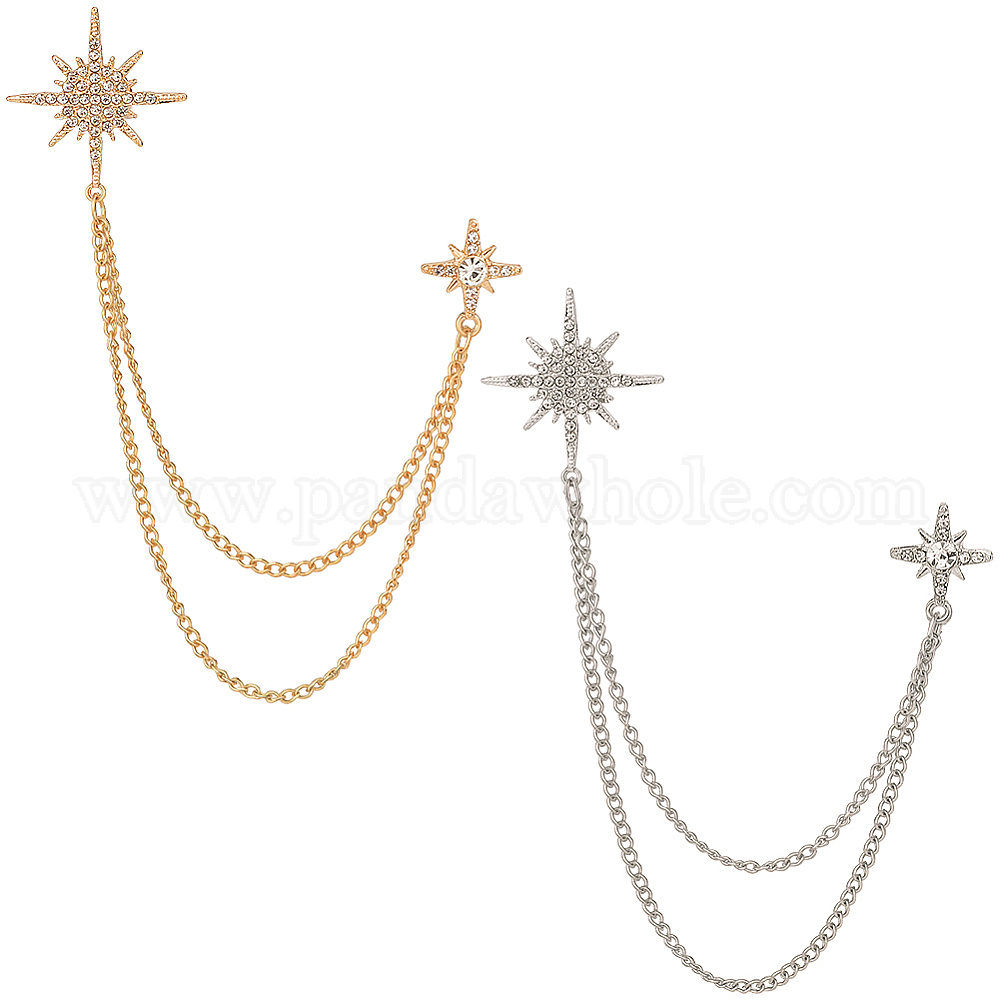 2шт. 2цвета мужская брошь-подвеска из сплава со стразами, значки для лацканов рюкзаков, звезда