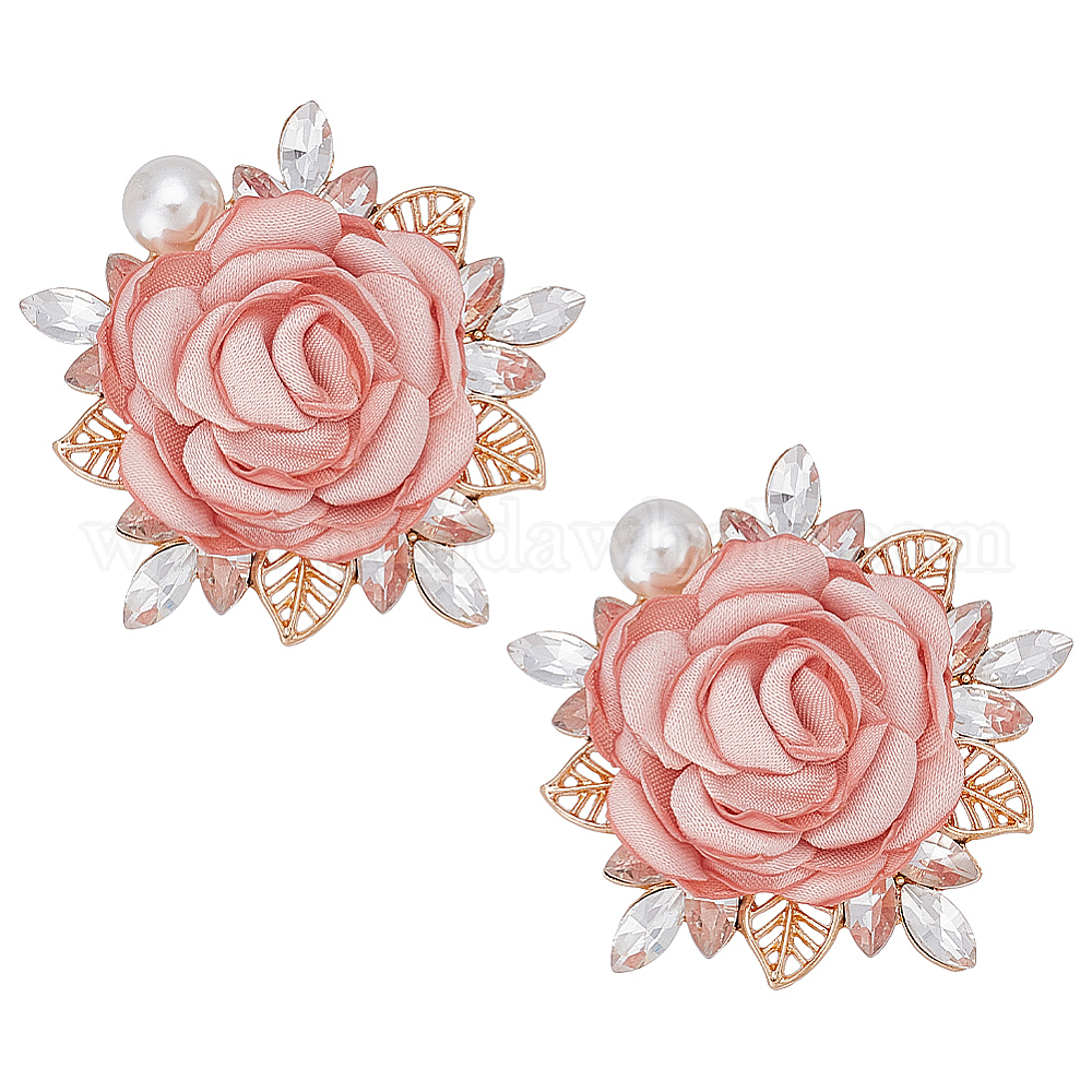 • Pink 2 шт. броши-цветы из полиэстера, булавки из сплава для лацканов одежды рюкзака, со стеклом, розовые, 53.5x52 мм