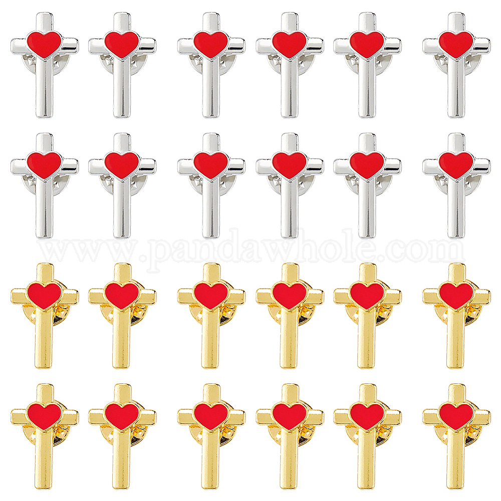 24 шт. 2 цвета крест с сердцем сплав эмалированный лацкан для рюкзака одежды