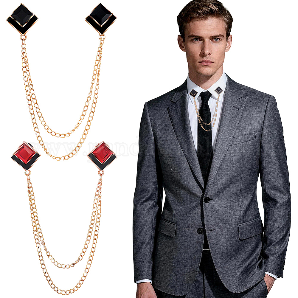 2шт. 2 цвета ромбовидные эмалированные значки для лацканов, Брошь-цепочка со стразами из цинкового сплава для рюкзака и одежды