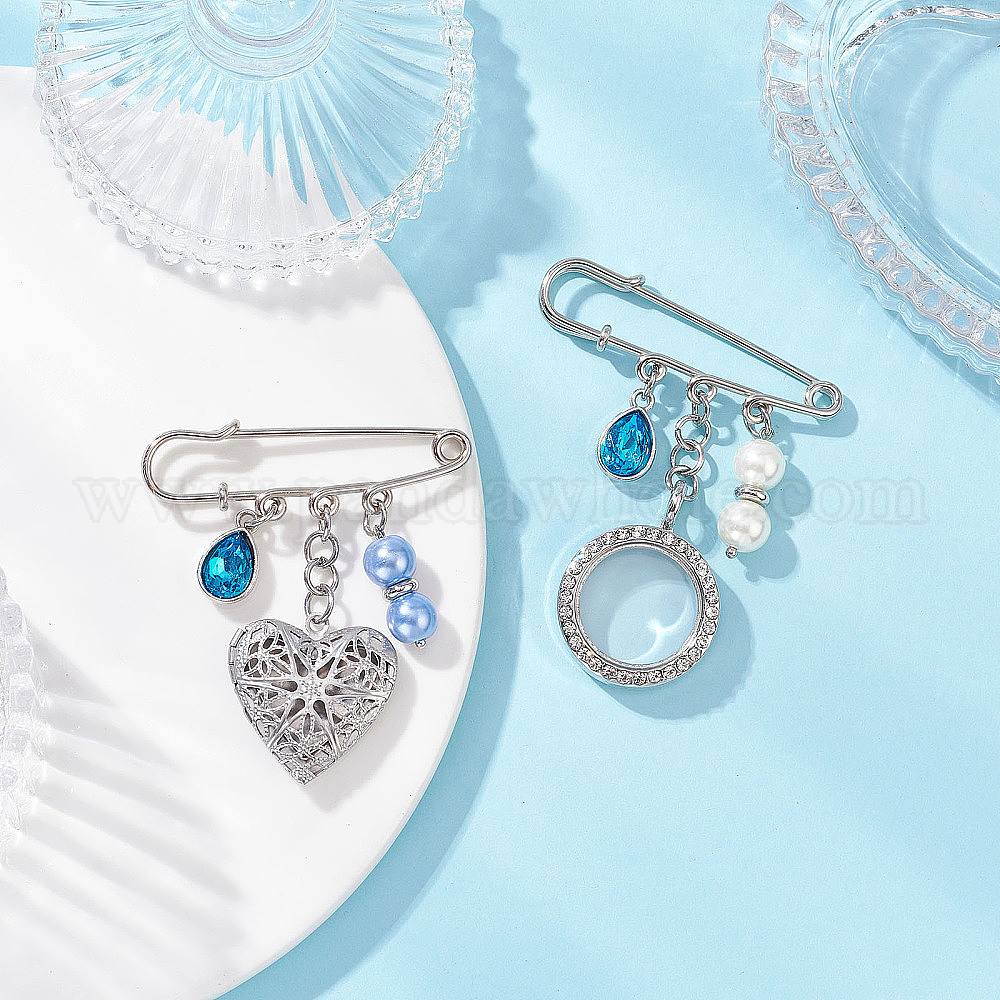 Контакты железа безопасности, 304 подвески-медальоны из нержавеющей стали с кристаллами и стразами из сплава, плоские круглые и сердце, со стеклянными жемчужными бусинами и стеклом, платина