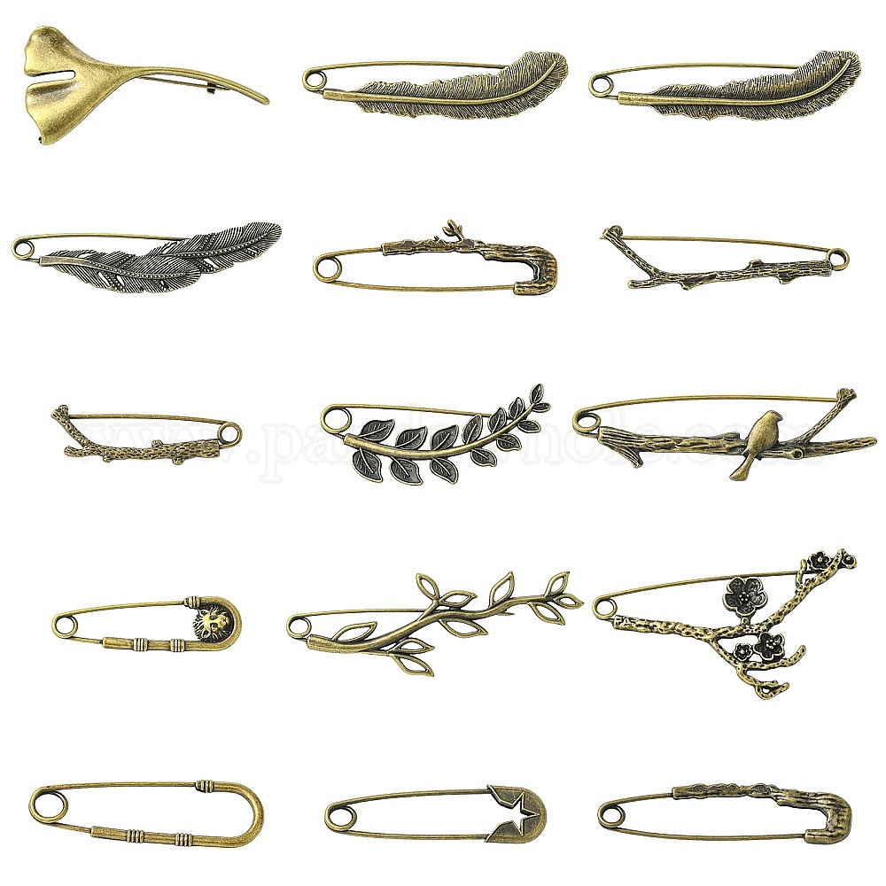 15шт 15 стили брошь булавки сплава, античный бронзовый значок для рюкзака или одежды