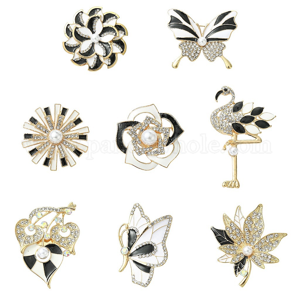 8шт. 8 стили эмалированные булавки, значки со стразами из сплава для одежды, с имитацией жемчуга (036S8K)