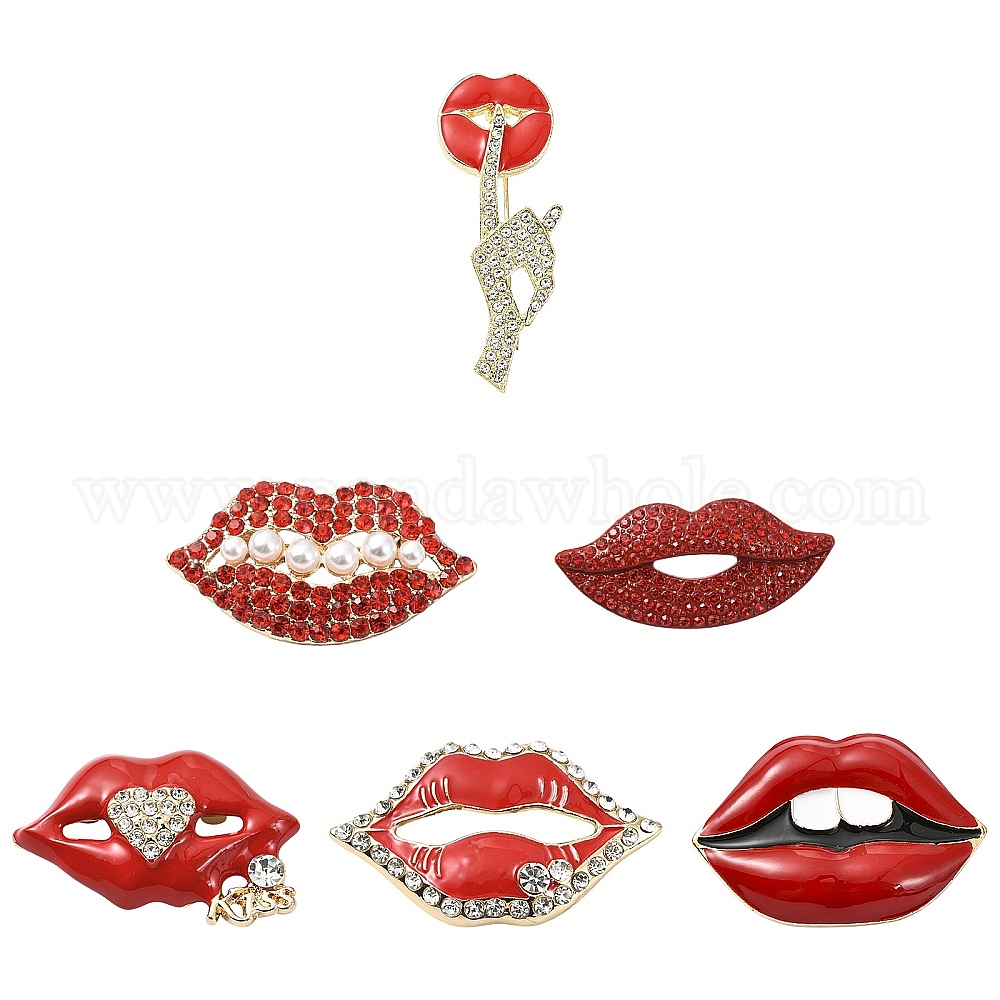 • Красный 6шт. 6 стили, значки для губ с эмалью, значки из сплава со стразами для рюкзака и одежды, с пластмассовой жемчужиной abs, красные, 18~46.5x18~45.5 мм, 1 шт / стиль