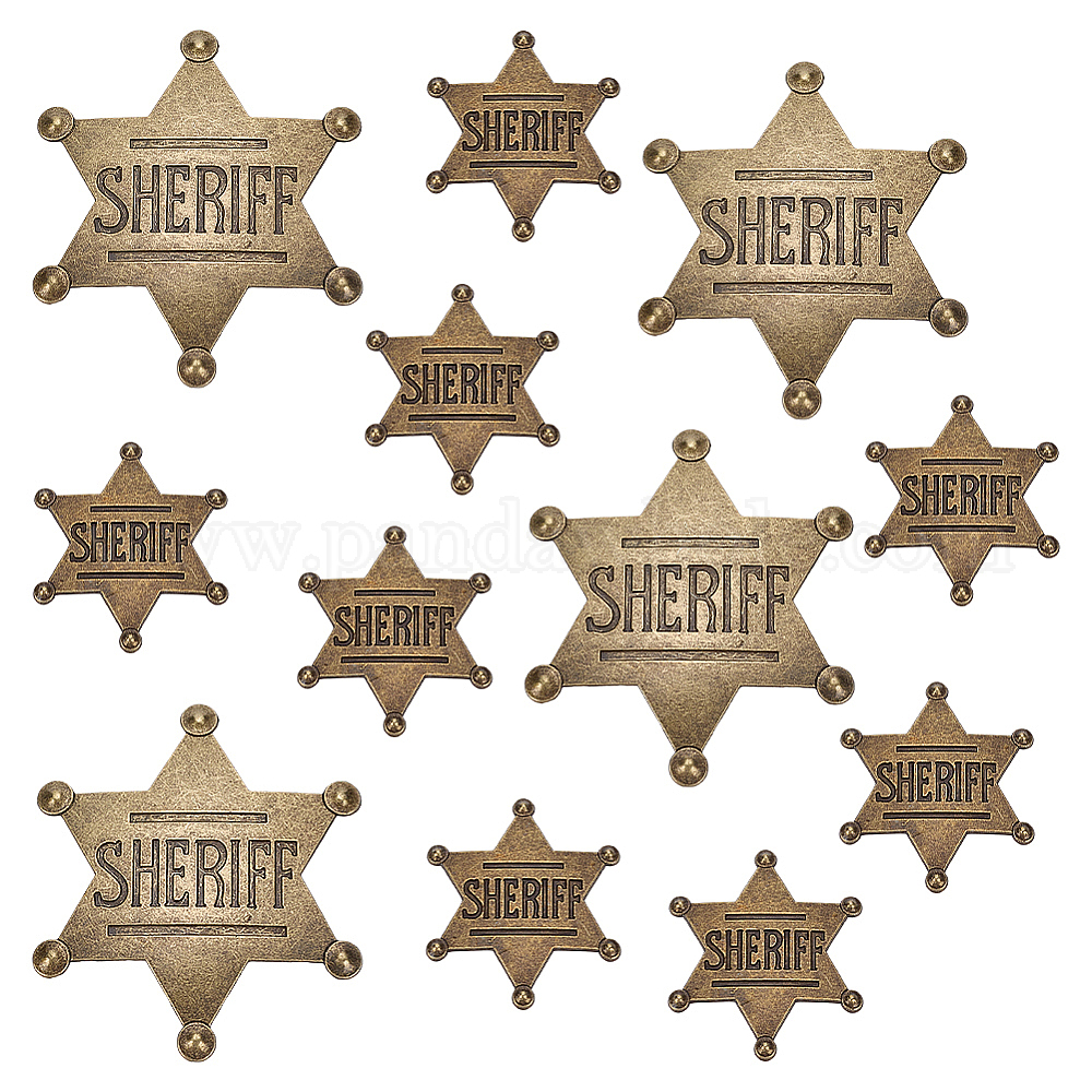 12шт. 2 стили, брошь-булавка в виде звезды из сплава со словом «шериф» для аксессуаров к костюму