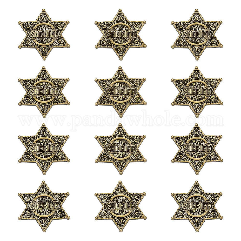 Значок на лацкан из сплава в виде звезды Давида со словом «шериф»: ширина около 29 мм., 29 мм длиной, 12 шт./компл.;