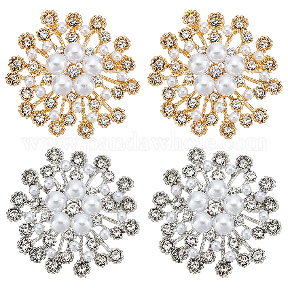 4 шт. булавки для лацканов одежды со стразами из цветочного сплава, с пластиковой жемчужины