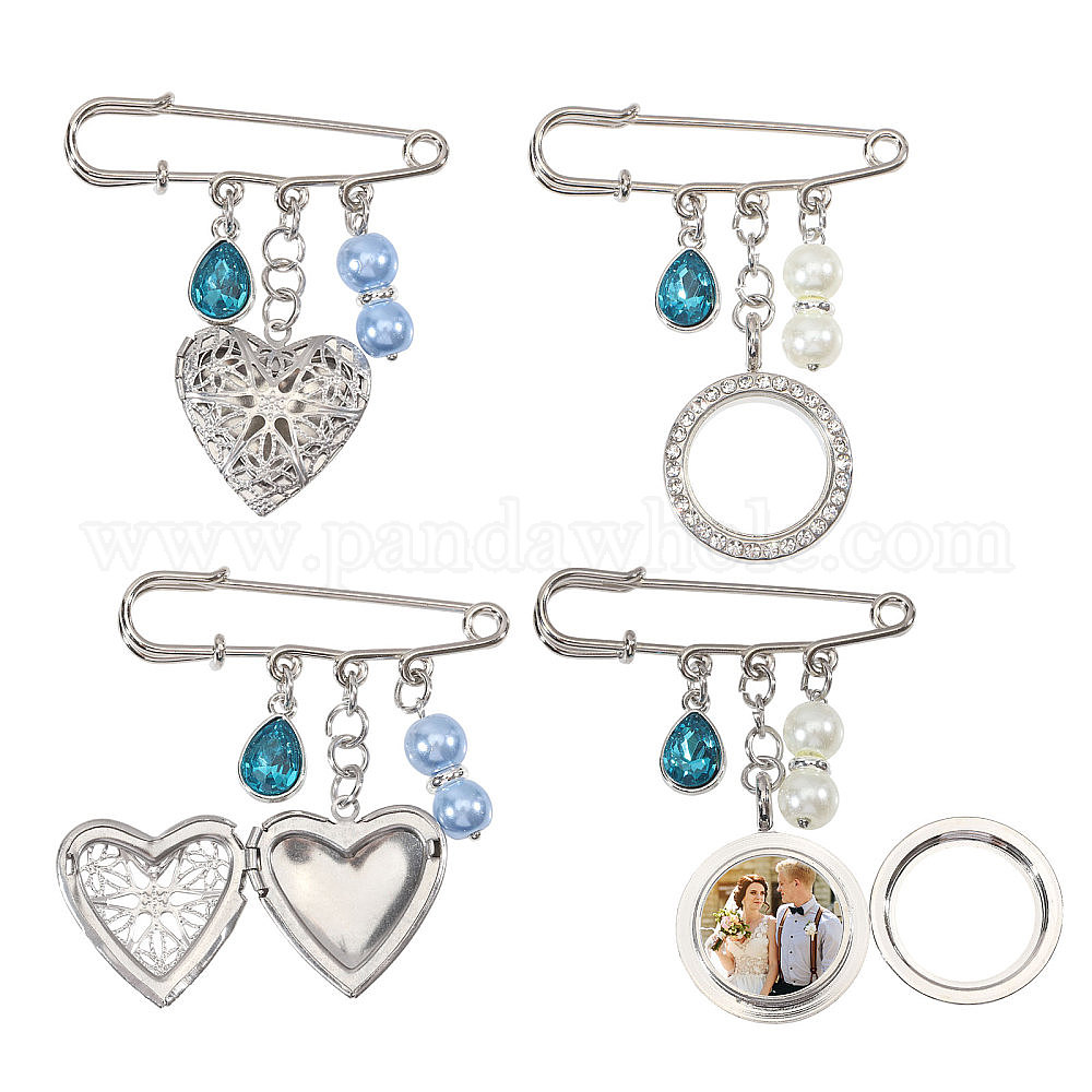 4 шт. 2 стили 316 диффузор из нержавеющей стали и сплава, подвески, медальоны, броши, наборы, с запекаемой стеклянной круглой бусиной с перламутровым покрытием для шарфов и свитеров