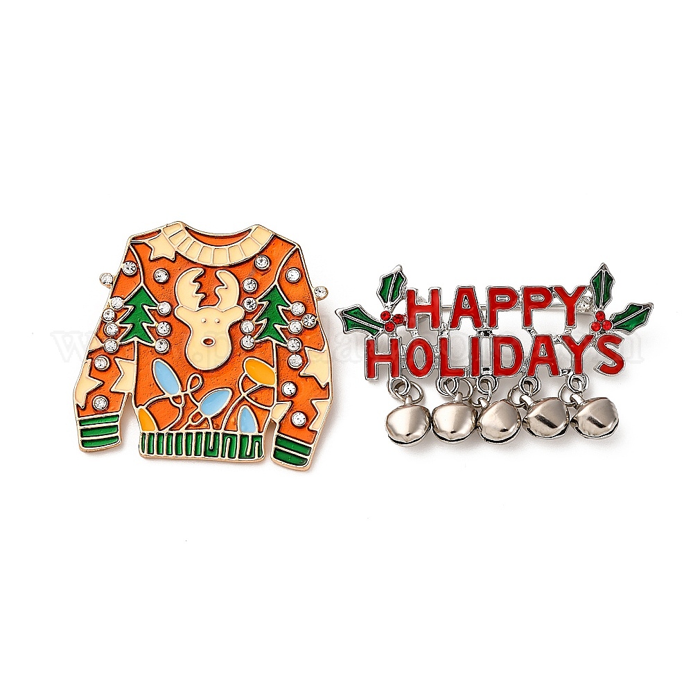 • Слово Рождественские эмалевые булавки, броши из сплава страз для одежды, с колоколом, Счастливых праздников, 34x53 мм