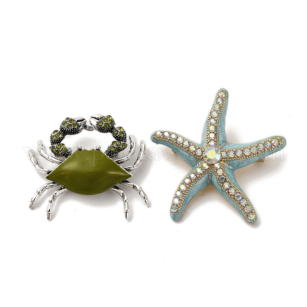 • Краб Сплав горный хрусталь брошь, изысканные эмалевые значки на лацкан для мужчин и женщин, краб, 37.5x41 мм