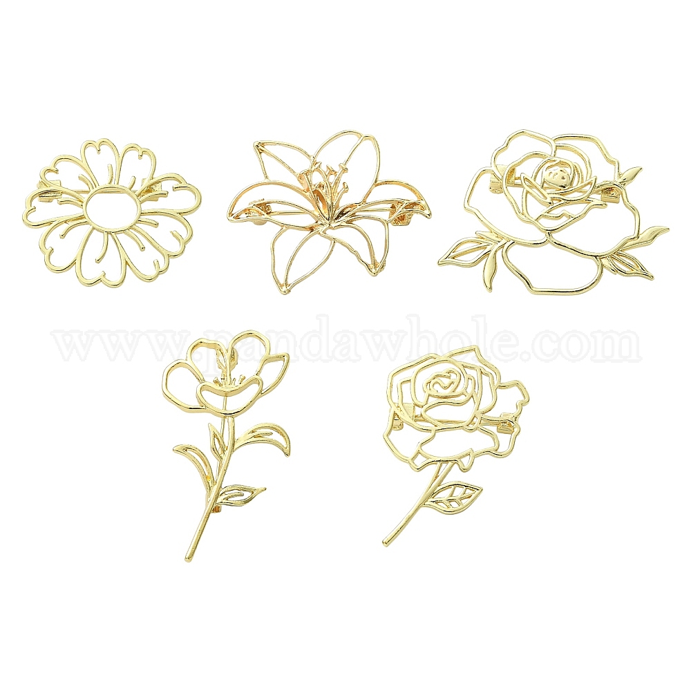 5шт. 5 стили, значки из сплава для одежды, цветок