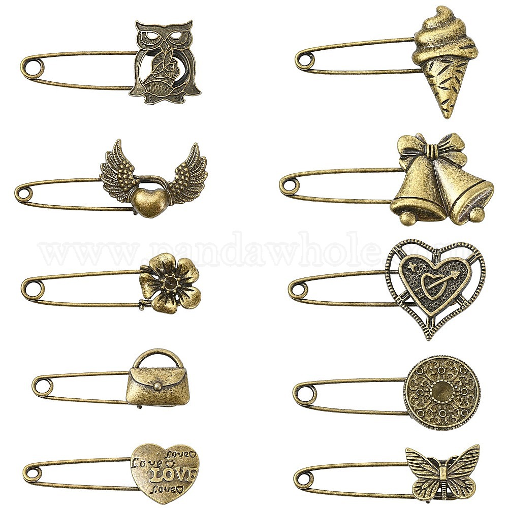 • Mixed Shapes 20 шт. 10 стили булавки для килта из сплава для рюкзака, античная бронза, разнообразные, 16~54.5x23~61.5x7~9 мм, 2 шт / стиль