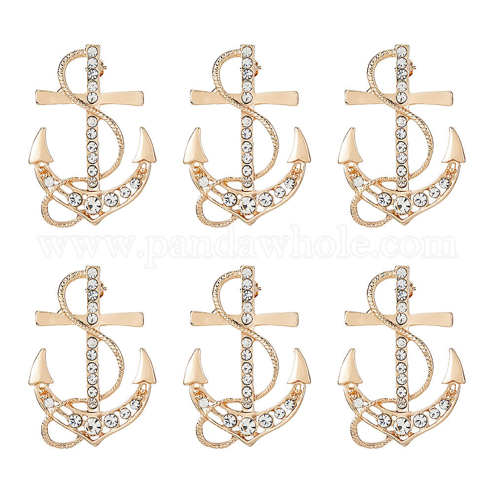 6шт. значки с якорем из сплава со стразами для рюкзака и одежды