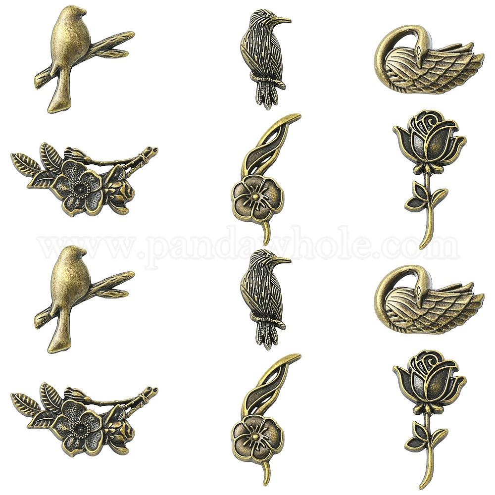 12шт. 6 варианты застежек для значков из цинкового сплава для одежды, античная бронза и платина, разнообразные (037D92)