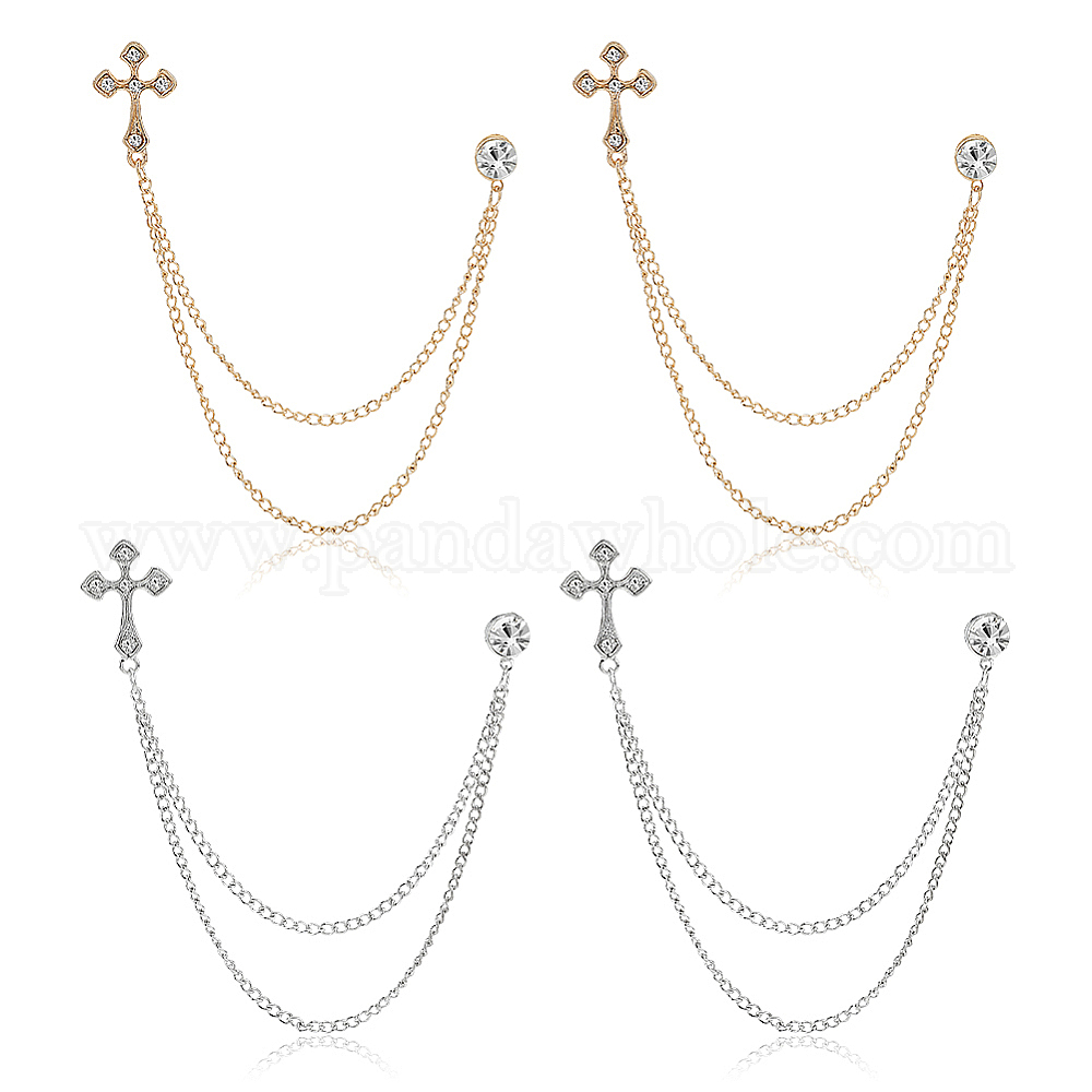 4шт. 2 цвета сплав страз подвесная цепочка брошь, Брошь для воротника рубашки, крестик