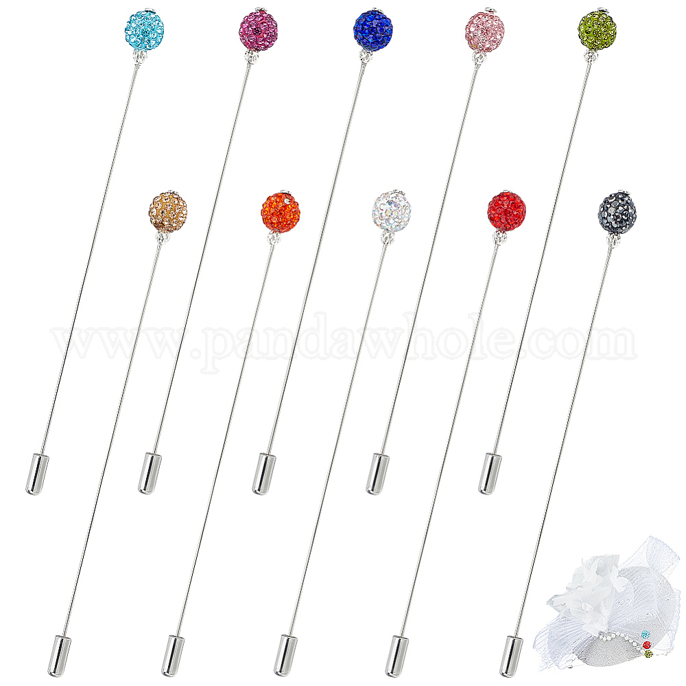 • (52) Непрозрачная лаванда 10 шт. броши из полимерной глины со стразами, с медными контактами, круглые, разноцветные, 126 мм