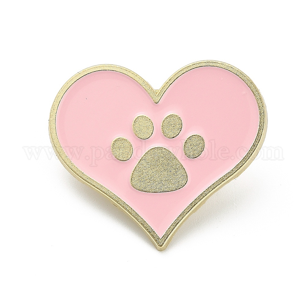 • Pink Эмалевые булавки в форме сердца с отпечатком лапы, булавки для лацканов из сплава для одежды рюкзака, розовые, 26.5x30 мм