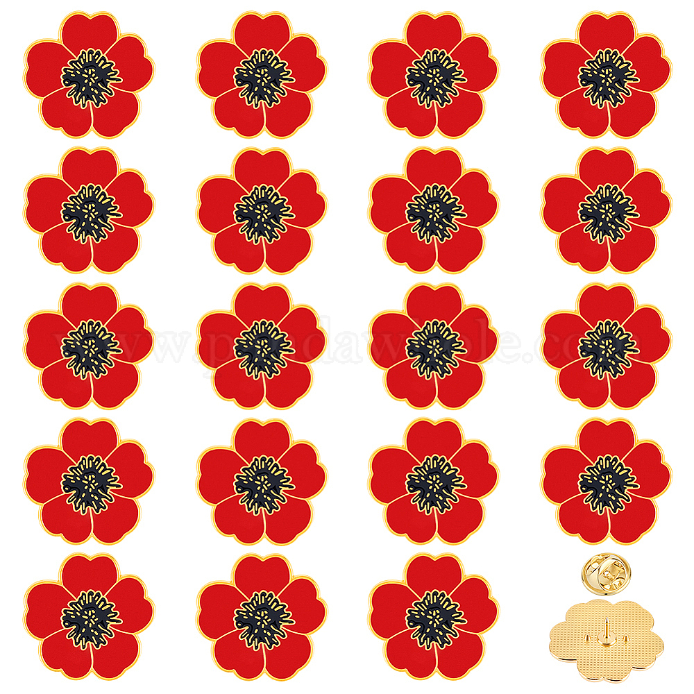 • Красный 20шт. брошь из сплава с эмалью в виде мака, Застежки для значков на лацкан для рюкзака и одежды, красные, 25.5x26.5 мм