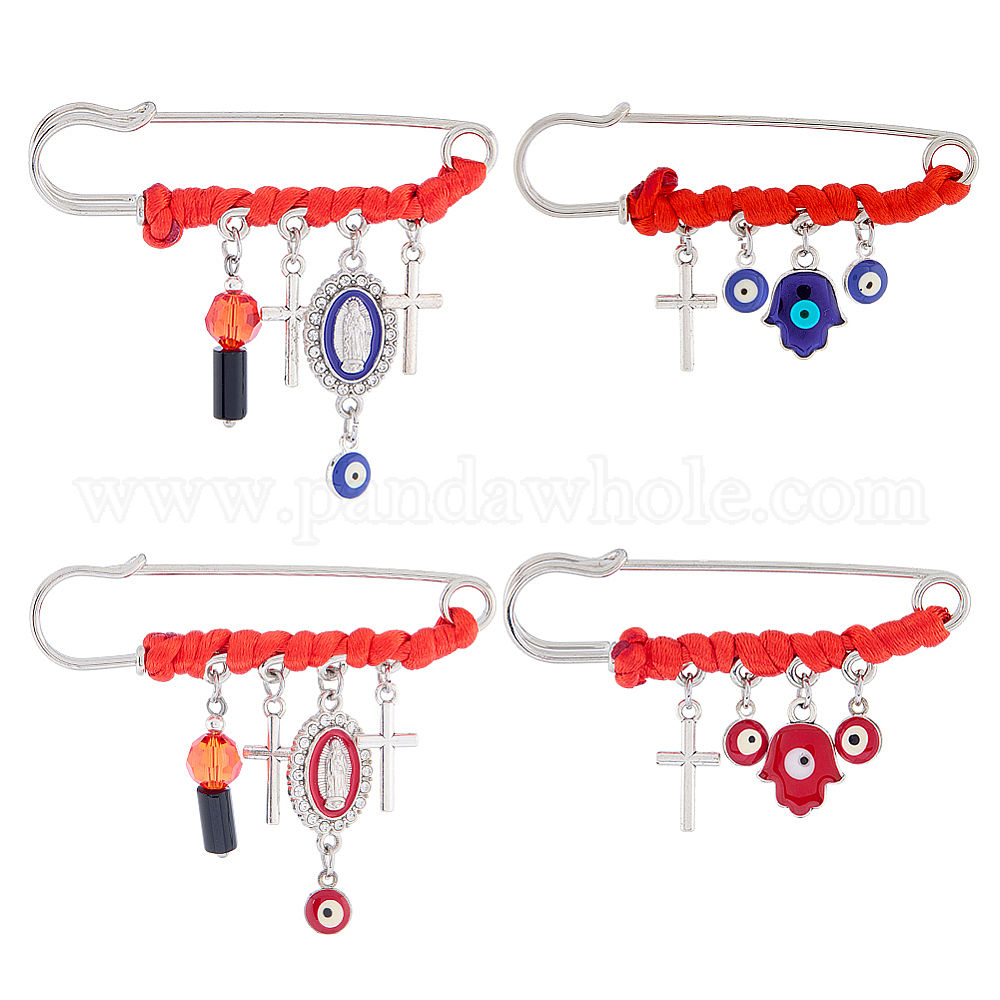 4 шт. 4 стили стальные броши, с подвесками из эмали и сплава , сглаз и рука хамса и крест
