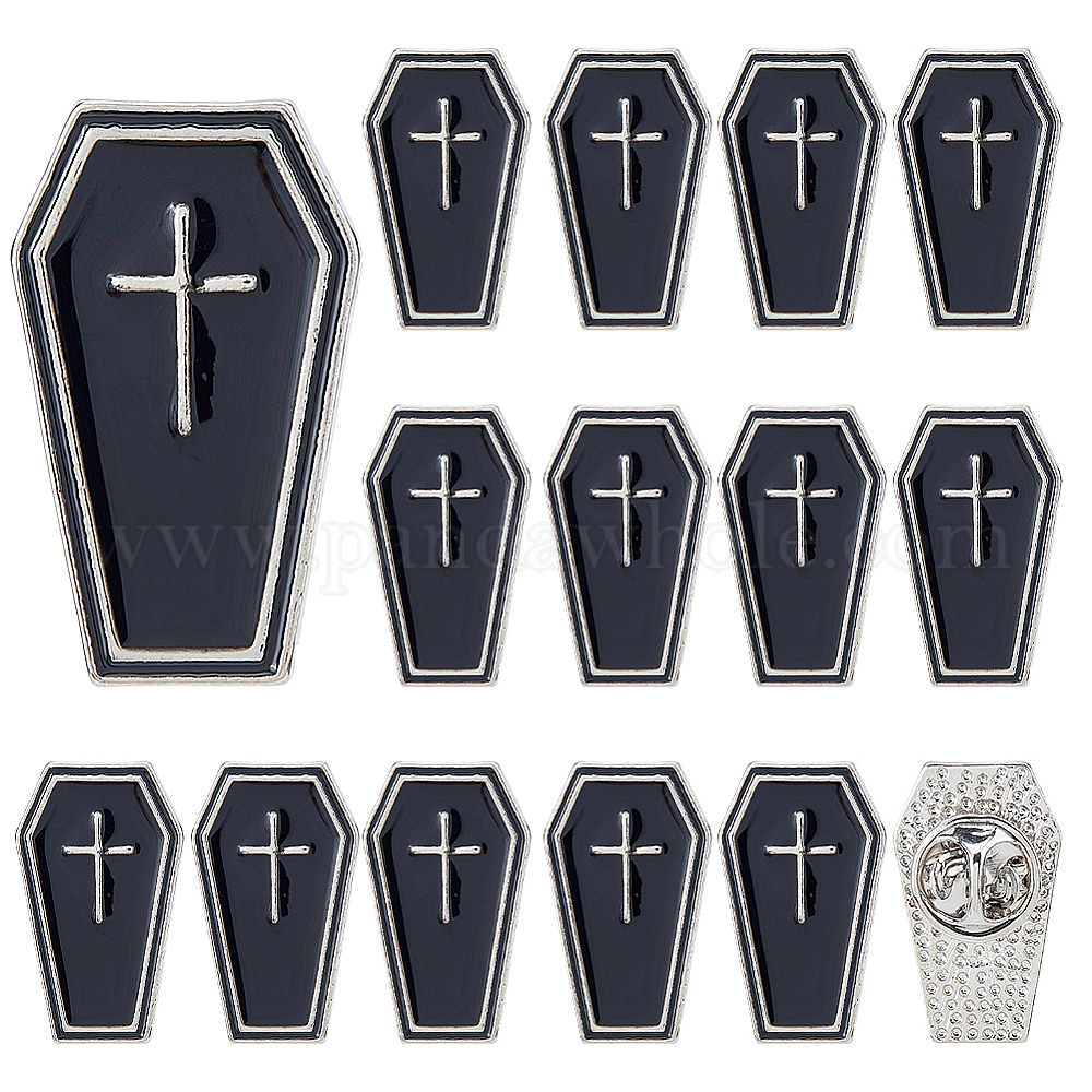 16шт. значки в стиле панк из эмалированного сплава для рюкзака и одежды, чёрные, платина