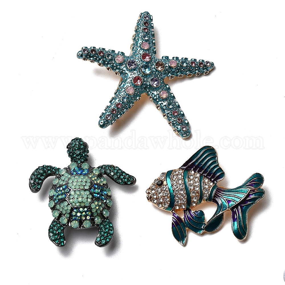 • Морская звезда Значки на лацкан из сплава со стразами в морском стиле для рюкзака, одежды, одежды, морская звезда, 58x58 мм
