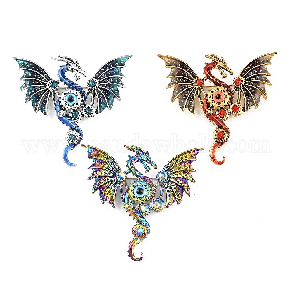 Дракон со злым глазом, сплав со стразами и пластиковыми булавками для рюкзака