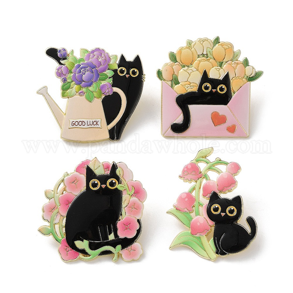 Эмалированные значки с изображением черной кошки и цветка, булавки для лацканов из сплава для одежды рюкзака, золотые