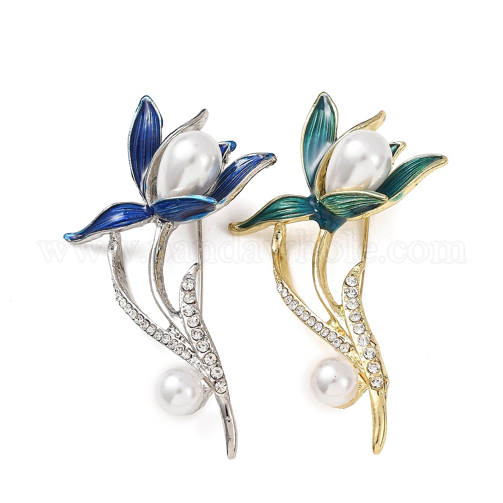 Эмалевые броши-булавки в виде цветка магнолии, с горный хрусталь и пластиковой бисера