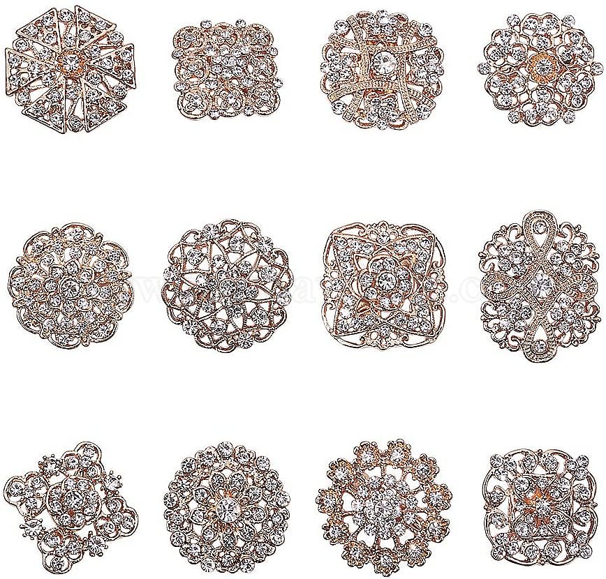 • Золотой Сплавные защитные броши, с горный хрусталь и железа штифта, цветок, кристалл, золотые, 31~38 мм, 12 шт / комплект