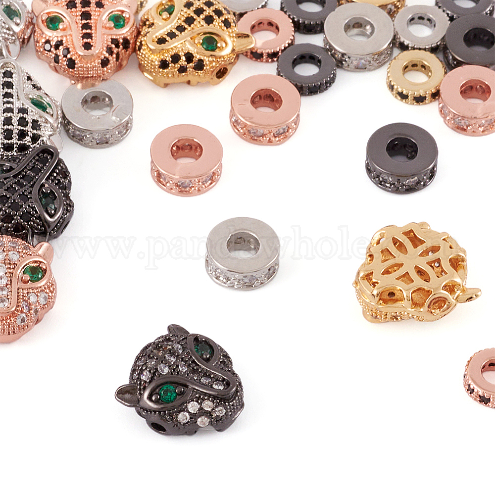 Латунные микро проложить кубического циркония бусы, леопард и плоский круглый