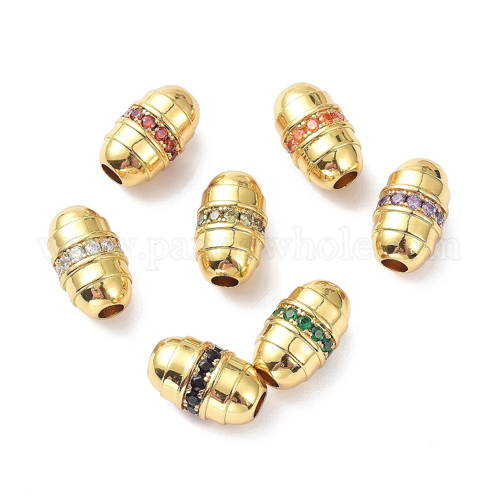 • (52) Непрозрачная лаванда Латунные бусины из кубического циркония с микропаве, долговечное покрытие, реальный 18 k позолоченный, колонка, разноцветные, 17x10.5 мм, отверстие : 4 мм