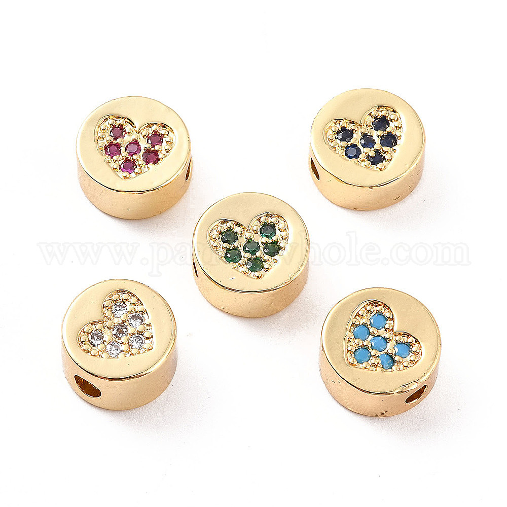Стойки обшивки латунь микро проложить кубического циркония бусы, без кадмия и без свинца, реальный 18 k позолоченный, плоские круглые с шаблоном сердца