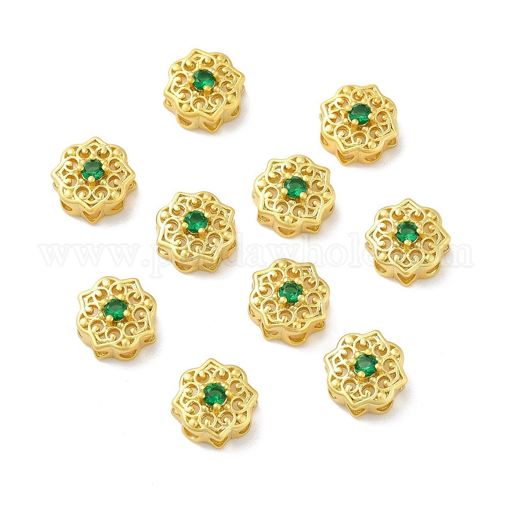 Стойки обшивки латунь микро проложить кубического циркония бусы, долговечный, без кадмия и без свинца, цветок (02D4WS)